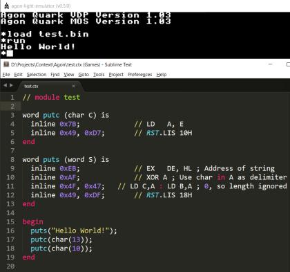 А поскольку он собран в режиме совместимости с Z80, то старший байт адреса проигнорен. Поэтому и ctx.bin, и hello.bin запускаются из папки mos.