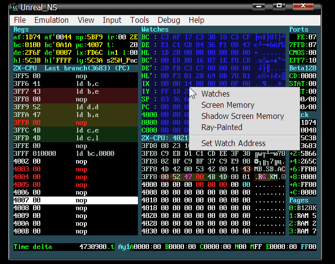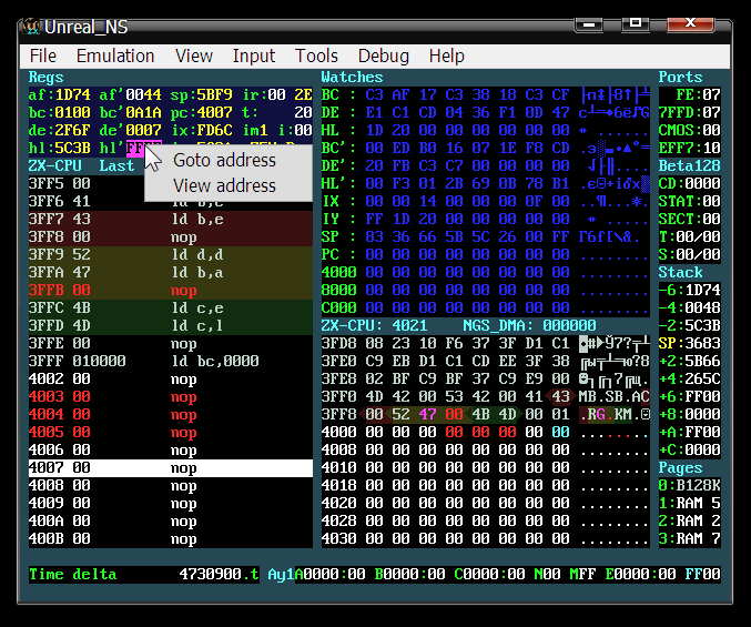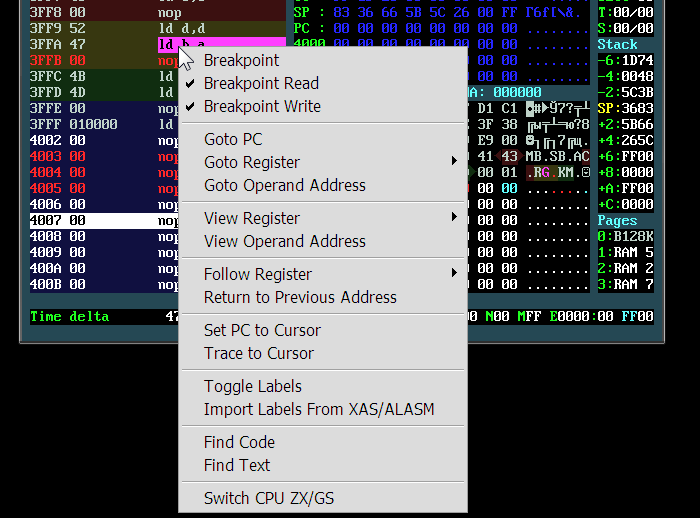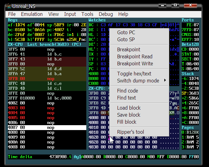 Новая расцветка дебагера (на которую не влияет поллитра спецтрума)