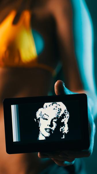 Ну вот у меня фон знакоместа может быть чёрным, а может быть серым. Поэтому на сером или черном фоне я могу рисовать белыми или не очень белыми пикселами. Благодаря этому так же можно использовать дизеринг и сглаживать гребёнку белых пикселей. Это видно на градиенте слева (белый пиксель/черный фон, серый пиксель/черный фон, серый пиксель/серый фон, белый пиксель/серый фон):