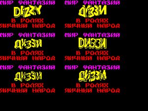 Варианты надписей. Вверху слева-направо: оригинал, то что сейчас, право средняя из Dizzy 3000 от Titusа, остальное моды.