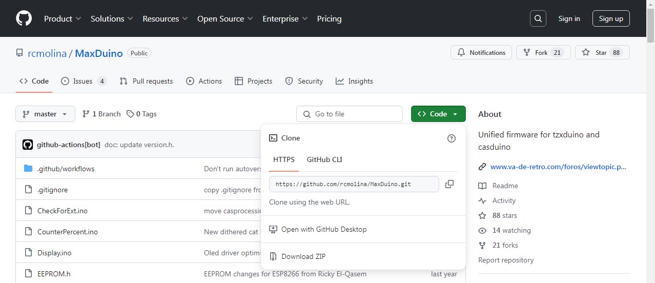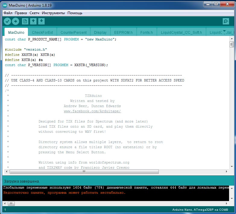 Есть две версии прошивки. Первая - официальная https://github.com/arananet/TzxDuino-Reloaded