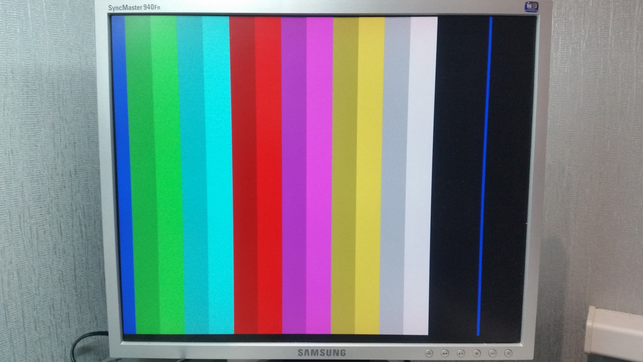 После копирования Raspberry Pi Pico автоматически перегрузится. Если все собрано правильно, на экране монитора должна появиться тестовая картинка. В зависимости от версии прошивки это могут быть цветные полосы или настроечная ТВ-таблица.