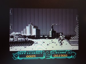 Следующий вариант подключить Спектрум к VGA-монитору - использовать адаптер RGB-VGA более известный как ZXKit1. Он имеет небольшие габариты и дает приличную картинку. В продаже есть готовые устройства, а так же наборы для самостоятельной сборки. У меня есть два таких адаптера. Прошиты 1.0.2. Изображение, в целом, нормальное, но можно заметить ряд вертикальных полосок, которые не убираются настройками монитора и адаптера.