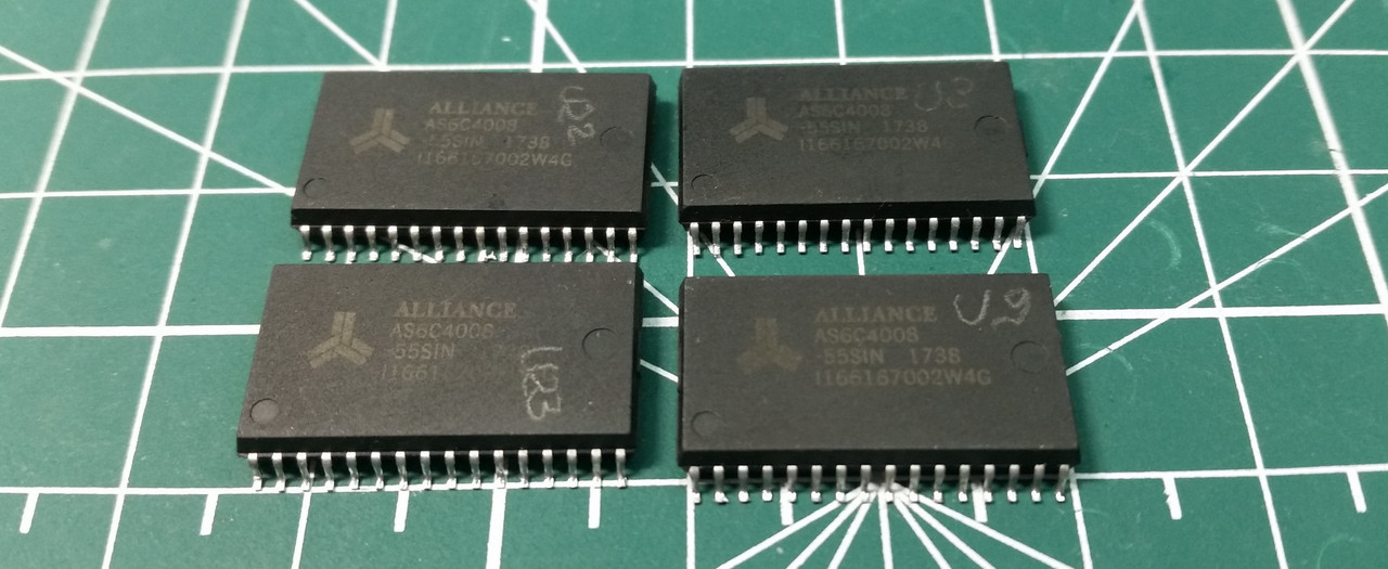 Один из двух "верхних" чипов точно неисправные. Наверно, попытаюсь припаять два чипа, которые были раньше на нижней части платы. По другому проверить память нет возможности.