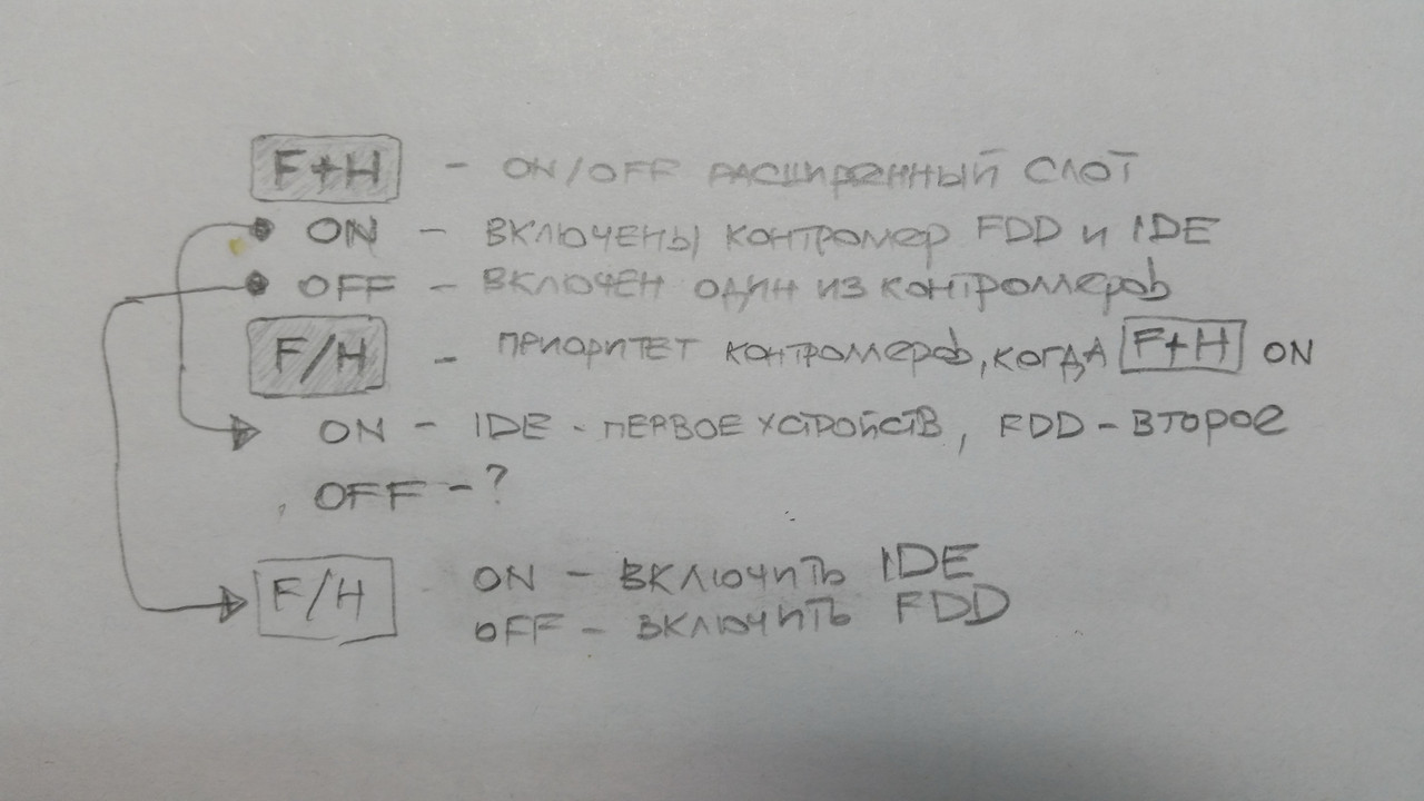 Комбинации, как включить оба контроллера и сделать FDD первым устройством, я не нашел.