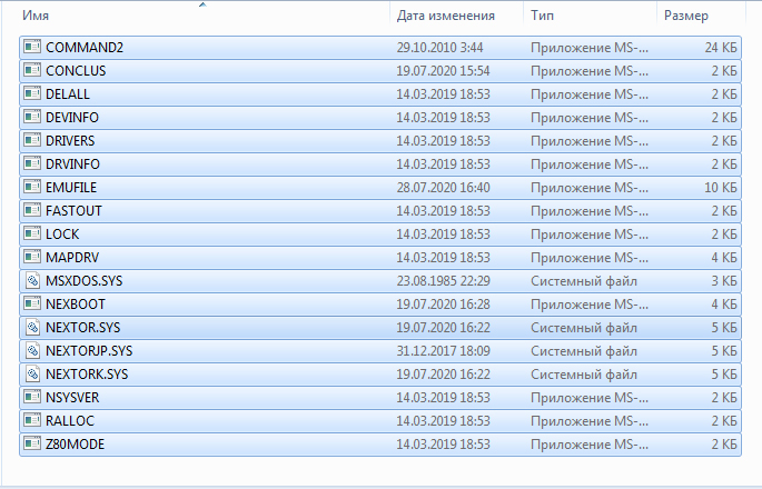 Копируем системные файлы Nextor из этого архива https://github.com/Konamiman/Nextor/....1.0/tools.zip в корень CF-карты: