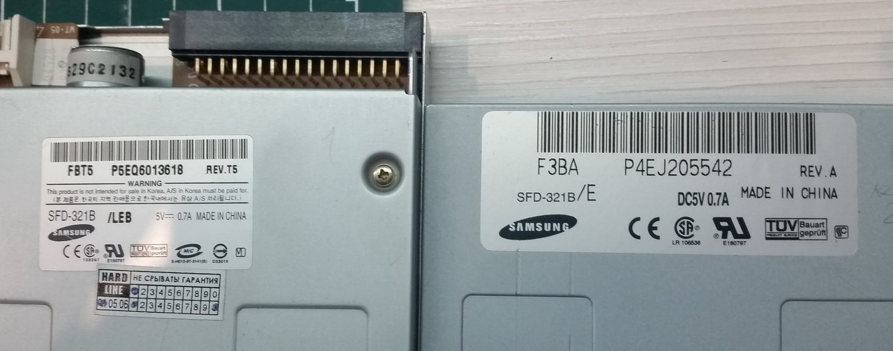 Настал черед подключить аутентичный 3.5" флоппи дисковод. В экспериментах участвовало две модели дисководов Самсунг SFD-321B. Только разных ревизий.
