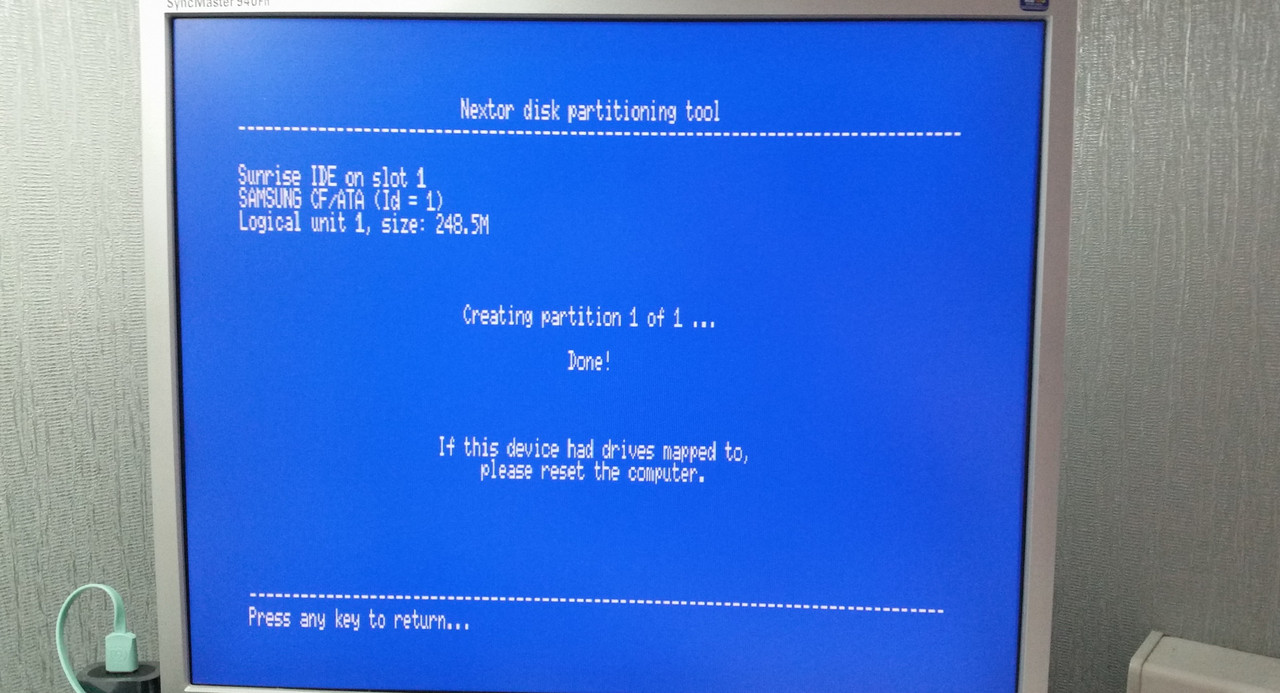 Даем команду call fdisk. Попадаем в Nextor disc Partitioning Tool.
