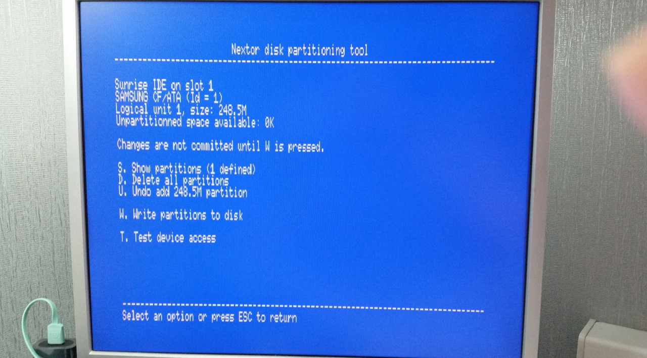Вставляем CF-карту в мультконтроллер. Включаем MSX.