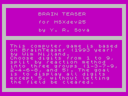 Эта компьютерная игра основана на «BrainTeaser» от Wim Nijland. Выбирайте доступные цифры от «1» до «9», разделяющиеся по методу реагирования на три группы («1-3-7-9», «2-4-6-8» и «5»). Цель — отобразить все цифры, кроме «5». Только следите, чтобы поле не очистилось.