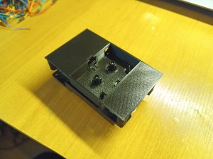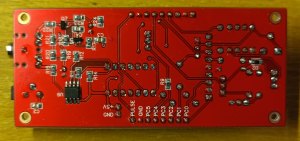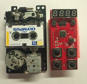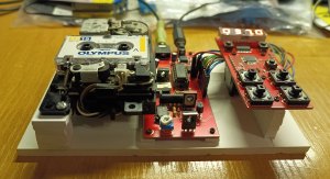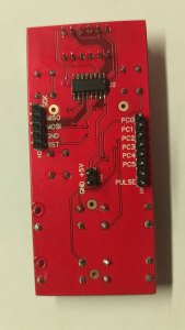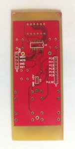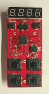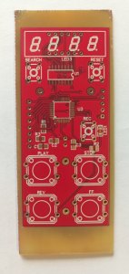 Доделал прошивку с основными функциями, работает все, кроме поиска, за него пока не брался, со счетчиком воевал. Дело в том, что на моем ЛПМ был разбит геркон, и я впаял первый попавшийся под руку, а он "звенит" как потерпевший. Короче дребезг победил, объединил модуль управления и индикации, теперь это процессорный модуль , и так как его схему менять больше не буду, запилил плату версии 0. Так как концепции внешнего вида изделия пока нет, то просто прямоугольник 3,5х8 см с кнопками и индикатором.