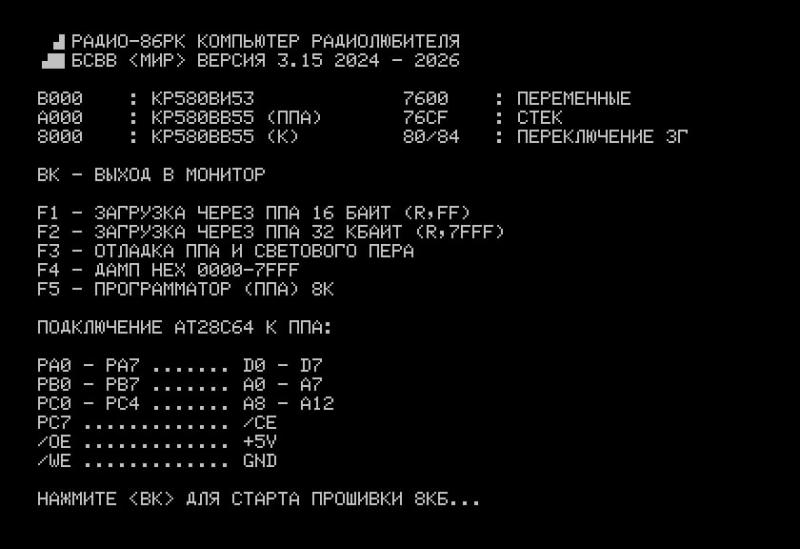 db "PRINT F2 - zagruzka ~erez ppa 32 kbajt (R,7FFF)", $00