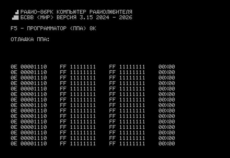 db "PRINT F1 - zagruzka ~erez ppa 16 bajt (R,FF)", $00