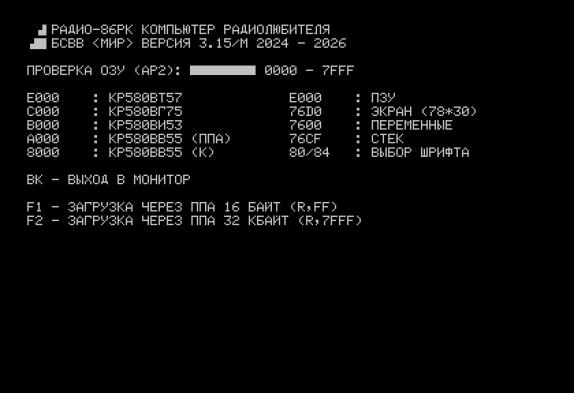Для чего нужна БСВВ на 86РК? Например, если вы добавили ВИ53 для звука на свободный адрес, то при включении будете слышать гул этого таймера. Так же и с другой периферией - её надо инициализировать. Главное что делает БСВВ - настраивает новую периферию. Дальше можно и память проверить, как на более молодых ПК.