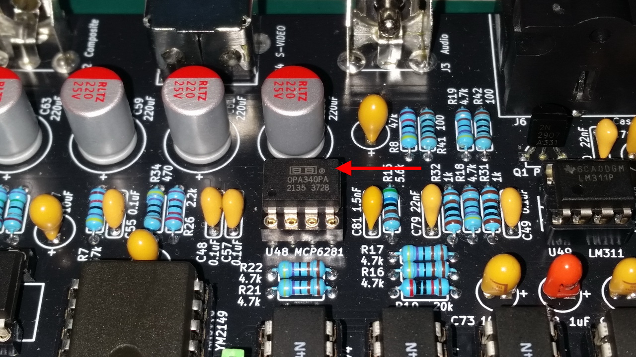 Для настройки кодера под PAL-режим надо использовать резистор R9 на 16 кОм и конденсатор C91 на 18 пФ. Я эти детали не паял т.к. хочу еще проверить и NTSC-режим: