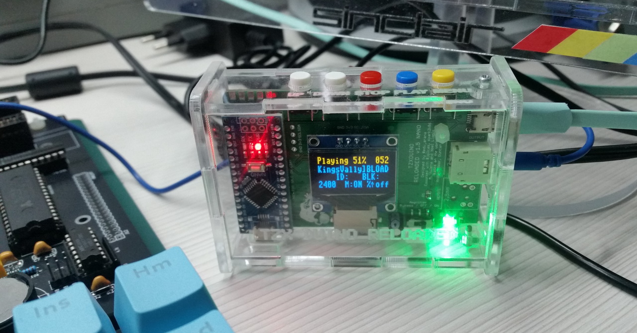 Для первого теста загрузки с магнитофона опять использовал TZXDuino. Включил усилитель сигнала, который есть в этом "магнитофоне".