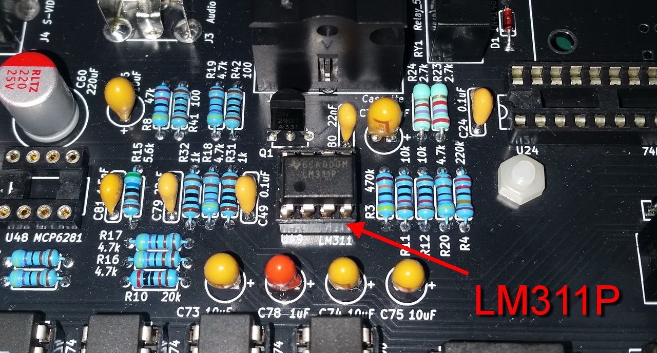 Восьмой тест - узел для загрузки с магнитофона. Установил микросхему-компаратор LM311P. Сделал кабель для подключения магнитофона к разъему J6. В качестве магнитофона применяю TZX DUINO, который был успешно протестирован с TrhMSX: