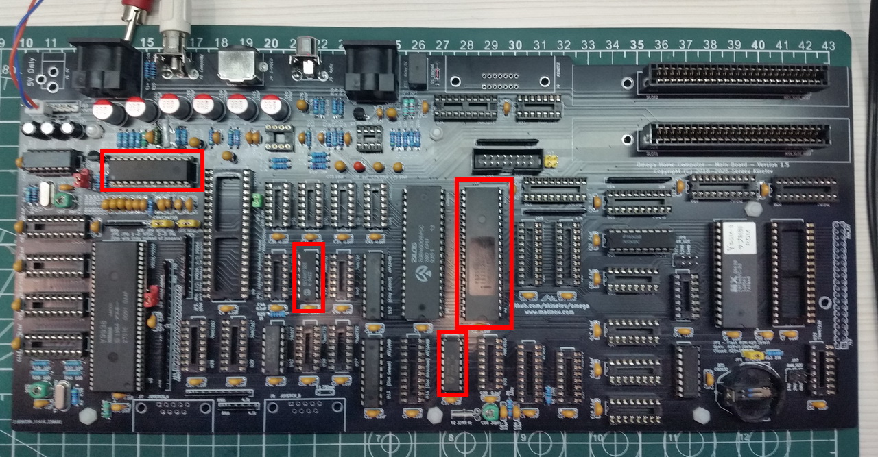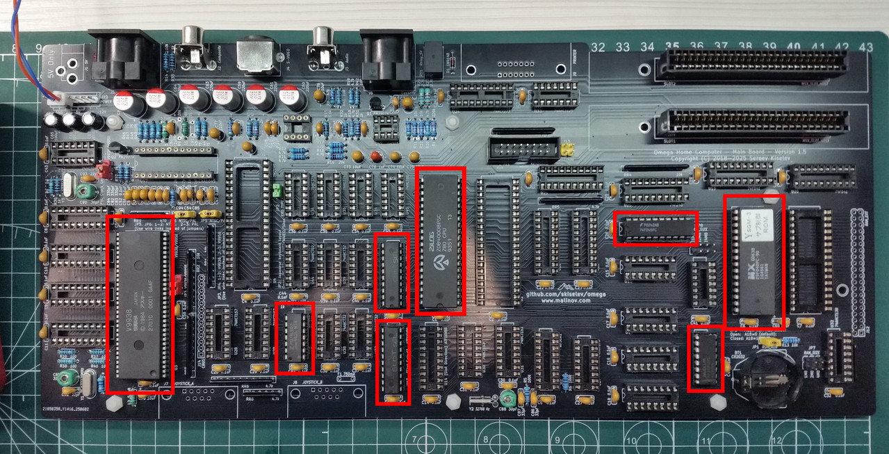 Устанавливаю микросхемы U2, U30, U39, U43 и U47, батарею BT1. Перемычку JP1 оставляю в положении ON. Прошу прощения за мутное фото: