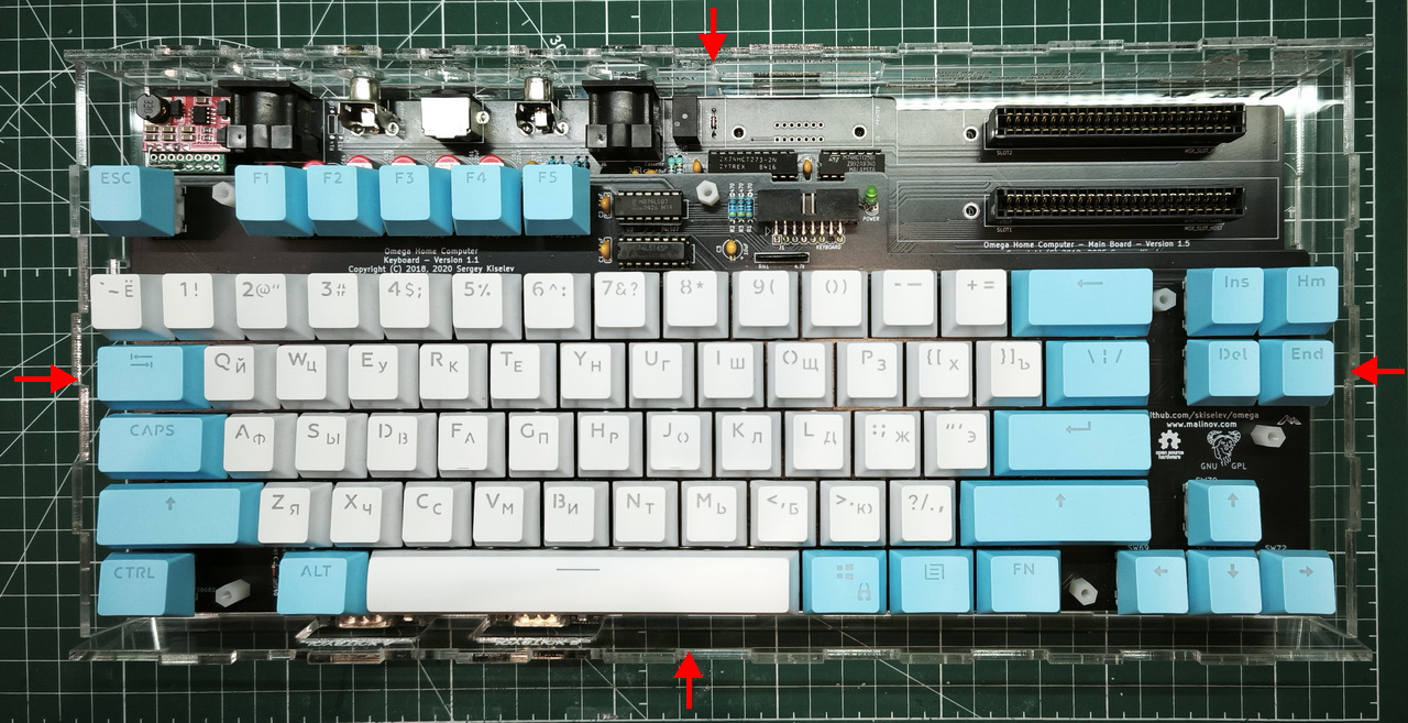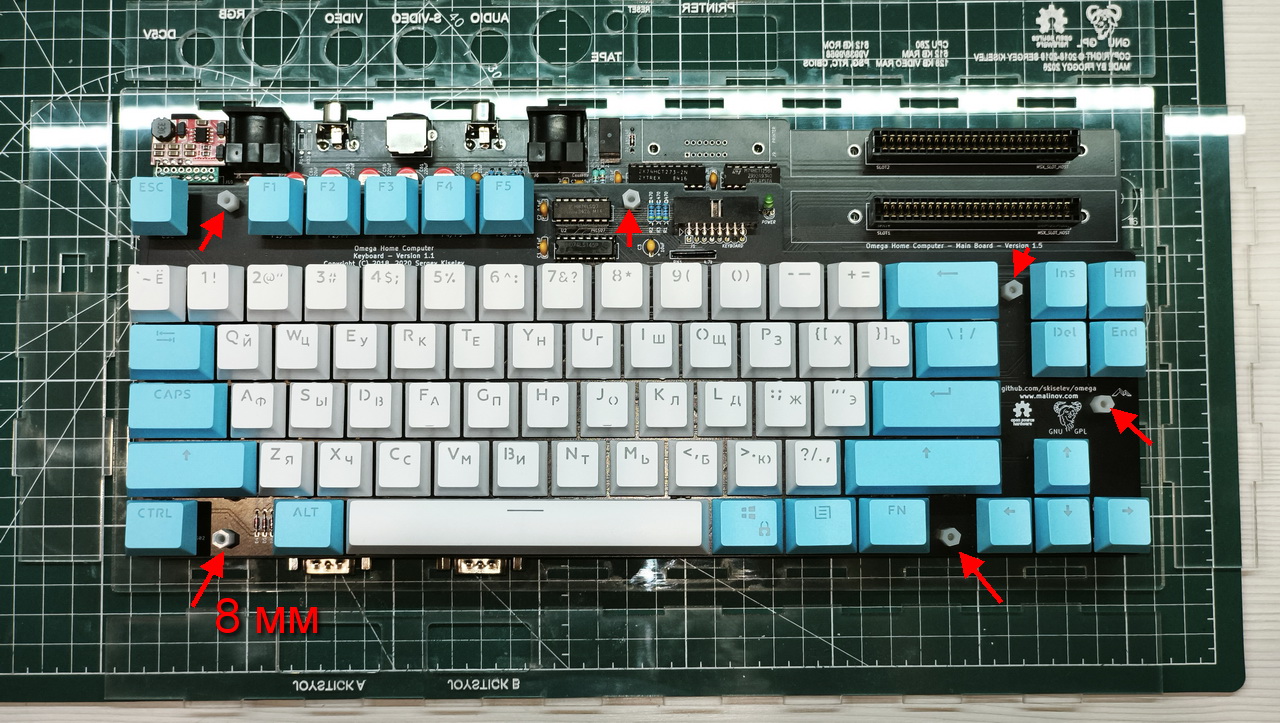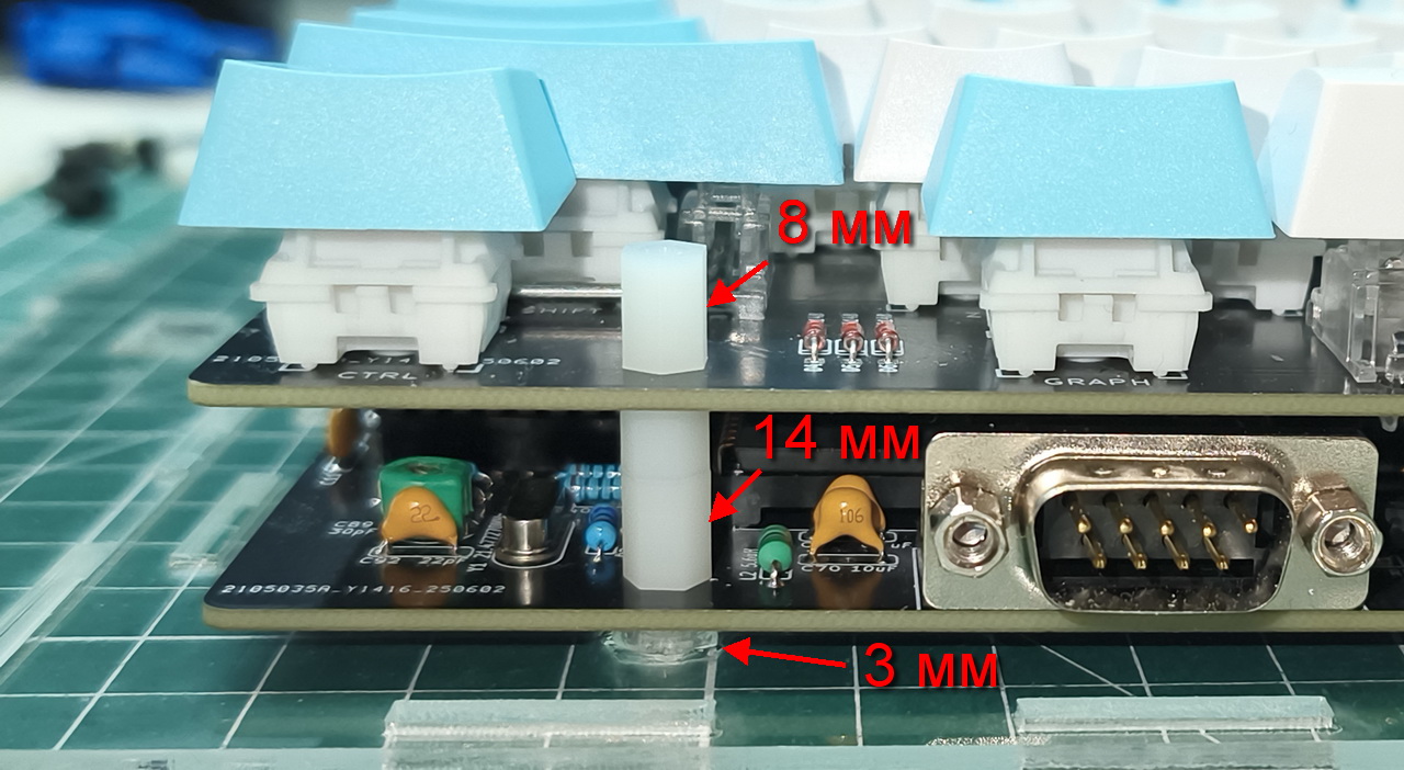 Ставлю сверху плату клавиатуры и прикручиваю стойками высотой 8 мм: