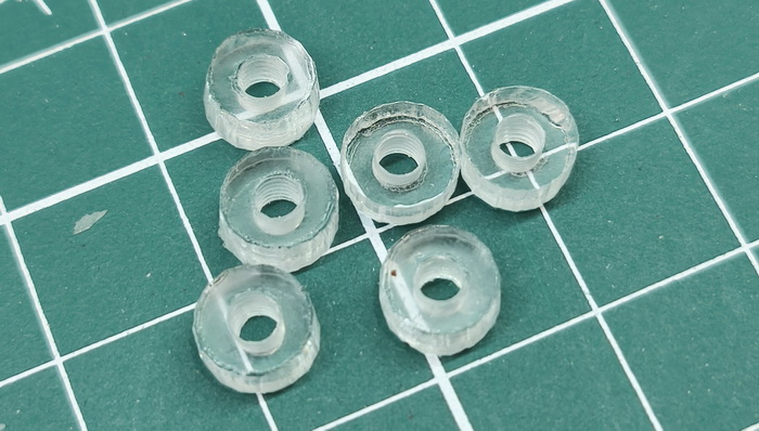 Сделал с запасом 15 круглых шайб-стоек. Внутри их будет нарезаться резьба М3.