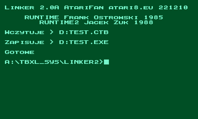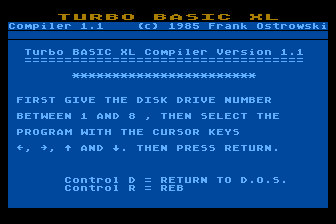 С нескольких мест скачивал Turbo Basic Compiler + Runtime + Linker, однако компилировать код так и не получилось. Есть целая коллекция по теме, но инструкции не нашёл. Образ картриджа, который предназначается для эмулятора Altirra — выбрасывает в чёрный экран.