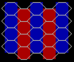 Старенький-престаренький мокапчик под типа "страну мифов" с псевдо гексагональю. Думалось в карте для бекграунда использовать 16x16 спрайты в столбцах со смещением по вертикали, а для построек и локаций уже доп. спрайты, чтоб с масками не издеваться и атрибуты не совмещать.