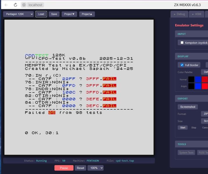 Внешне интерфейс мне нравится. Код такой себе. Медленный. Много ифов, функций. На Джаваскрипте это медленно. Флаг переполнения можно без таблиц быстрее посчитать, и полуперенос. На полную 700 кадров в секунду в браузере на моей машине - это круто, уровень ZXMAK. Но это медленно. Можно быстрее, если поработать с кодом.