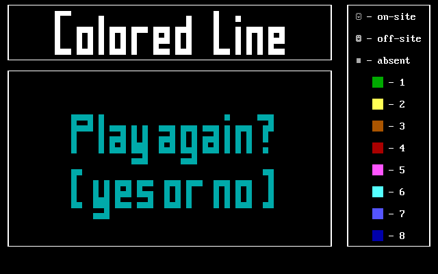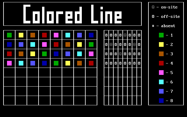 Переосмысление логической игры Master Mind — угадываем цветовую последовательность из восьми элементов. Исходник — cl-src.7z Для DOS — cl-dos.7z Для OS/2 — cl-os2.7z