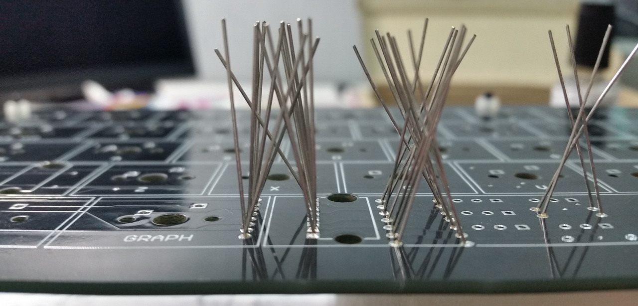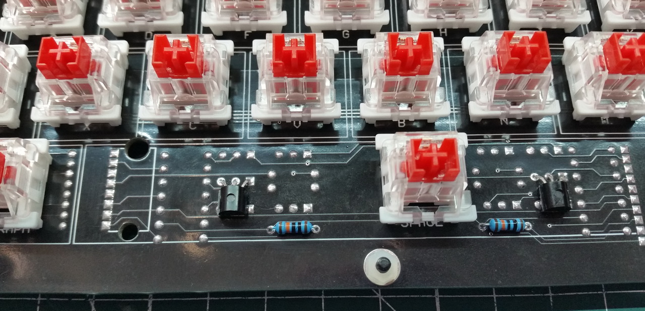 Тщательно отмываю плату спиртом. Можно приступать к монтажу свитчей. Никаких приспособлений для выравнивания не использовал. Ровнял с помощью сертифицированного глаза. Получилось ровно: