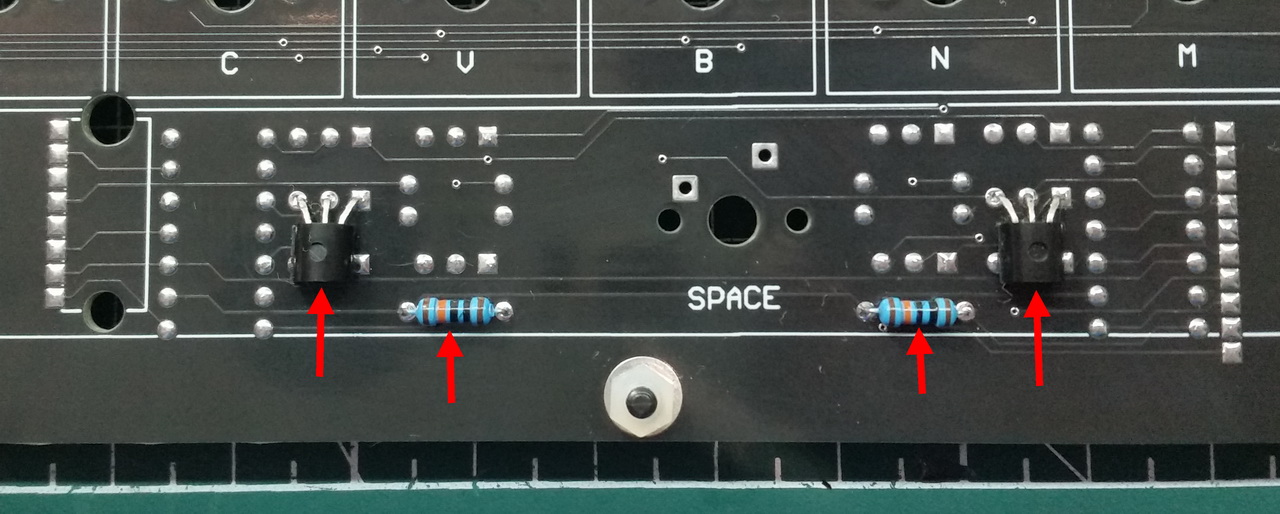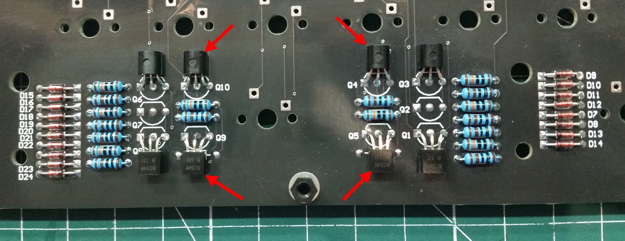 Чтобы уменьшить высоту клавиатуры "укладываю" транзисторы на спинку: