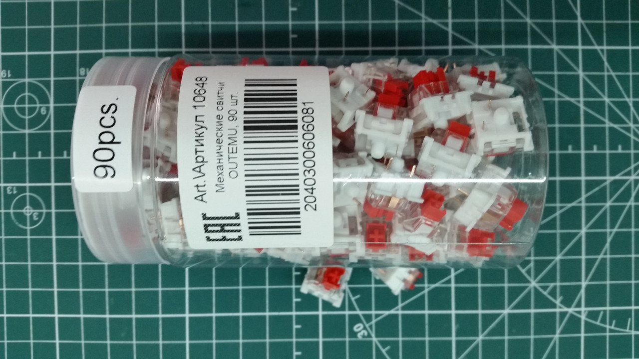 Для своего проекта я выбрал достаточно популярные линейные свитчи OUTEMU (красные). Покупал упаковку 90 шт на ОЗОНе. Все цены я приведу в самом конце этого материала.