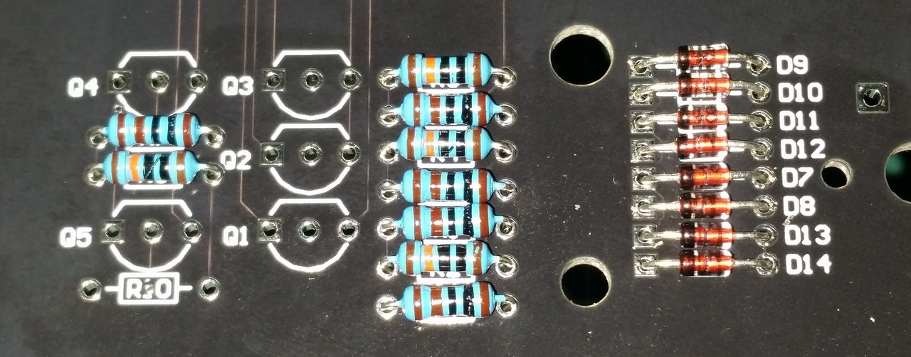 Два транзистора и резистора устанавливаю с лицевой стороны платы. Иначе они будут мешать монтажу: