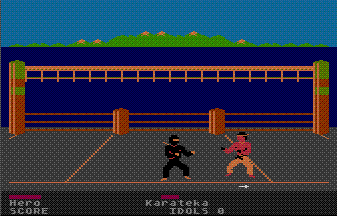 Так вот игра это карате, но еще вроде можно было звездочки использовать и управляешь кажеться ниндзя (или борешься с ними, не помню) Главное отличие от остальных, что герой выпадает с левой верхней части крана, вроде как из люка. И Уровни это наверное этажи здания. По ним пермещаешься и мочишь противников. Понимаю, что пишу не на тот форум, но это был 90-й год, +-год и думаю многие спектрумисты видели что-то подобное.