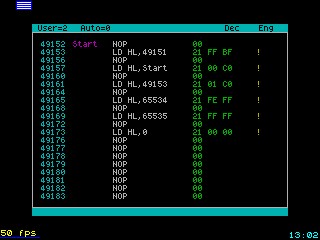 А вообще идею с дизассемблером поддерживаю обеими руками. Будет желание активно заняться написанием такого есть куча идей, ибо сам пытался сделать такое. В частности дизасм мог бы иметь таблицу стандартных точек (#5800, #5B00, #C000, #3D13, #3D2F и др.) по которым в 99% можно определить правильно ли установлен PC (ProgrammCounter) для процедур. Кроме того можно отсеивать явные массивы данных (это когда коды команд изменяются по инкрименту или когда присутстует большые участки команд LD *,*).