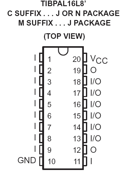 надо определить полное множество входов, у PAL16L8 есть 6 ножек которые могут быть входами, так и выходами. Надо выяснить кто там вход, кто выход.