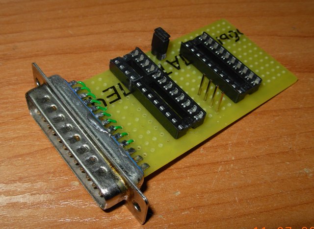 Да нет, нарисовал схему(ножки SDOUT и ACK# поменял местами на АП6), нарисовал плату, ЛУТ, спаял, проверил питание 5 вольт с 7805 и 78l05, на 8 ноге LP2951 23,5 получилось, подключил, в программе Galblast в меню нажал Порт - Setup,на XJP появилась напруга, резистором выставил 12 в , набрал 12 в окне - Ок.Проверил PAL16V8 чтение, GAL22V10 чтение-запись.
