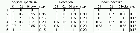 Conan, спасибо! Именно этого я и боялся, что сигналы везде разные. Хотя.. если подумать, то уровень BRIGHT0 в пределах (0.5;1) сортировки цветов вроде бы не меняет. А оптимальный уровень = 2/3, т.к. в этом случае распределение цветов наиболее равномерно (см. таблицу, ideal spectrum). Уровни 0.6 и 0.7 наиболее близкие к идеальному, причем я бы не сказал, что какой-то более близок (см. разницу между цветами step в таблице).
