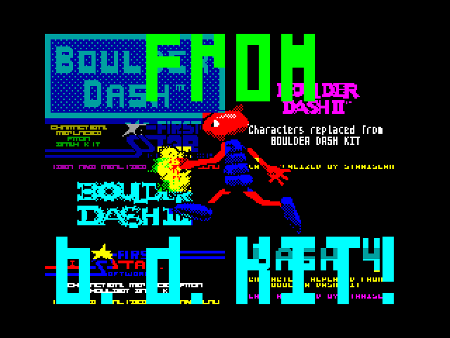Boulder Dash 1-4 with replaced characters from B.D.KIT by JeRrS'2013 - http://vtrdos.ru/gamez/b/BD14_J.zip