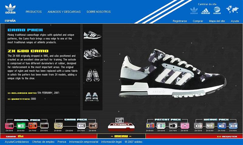 К юбилею ZX Spectrum, Adidas выпустила коллекцию ZX-Family. Информация об этой коллеции на сайте адидас оформлена и стилизована под "8ми-битный" дизайн =)