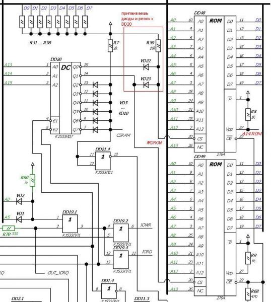 Выходит диоды можно не ставить и вообще сигналы с dd20 не использовать ? если прошить этой прошивкой ? а на выбор микросхемы подать только /RDROM
