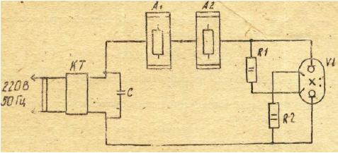 1. Бытовые солярии. Выпускались разные модели, например УФО-Б фото которого тут публиковали. Я пользовался схожей латвийской моделью SAULE. Схема у этих моделей одинаковая: ртутная лампа V1 (обычно ДРТ-100) включена последовательно с двумя спиралями A1,A2 (тепловыми излучателями в кварцевых трубках) ограничивающими ток (см. схему во вложении). Корпус ртутной лампы сделан из кварцевого стекла. Обычное стекло (оконное и в обычных лампах накаливания) ультрафиолет не пропускает. Кстати поэтому нельзя загореть сидя на солнце дома за окном.