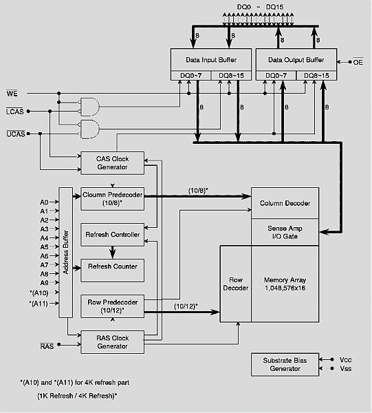 стоял включенный прихожу на экране мигает все пробовал перезагружать перевключать и т.п нипомомгает разобрал - некоторые 565ру5 горячие рещил их все убрать поскольку купить или найти негде. вместо них впаял одну микросхему из симм памяти HY5118164B JC-60 (1Mx16bit) подключили соответственно шину адреса только на ней 10бит я использовал 8 оставшиеся два занулил. данные подключил с 0-7 биты и 8-15 причем параллельно 0к8 1к9 2к10 и т.д. на микросхеме есть /LCAS (включает с 0-7биты данных) и /UCAS(включает с 8-15биты данных). припаял к шине данных кворума. /LCAS сделал как /CAS0 на кворуме /UCAS как /CAS1.