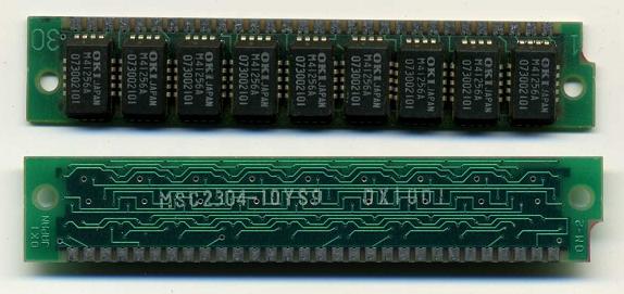 2 81C4256A-70 (256Kx4 FPM, 70 ns) + 1 HM51256P-8 (256Kx1 FPM, 80 ns)
