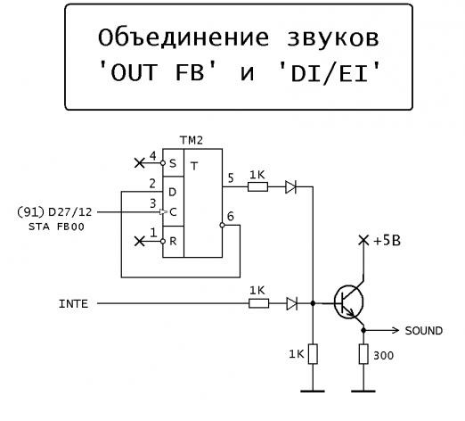 хорошо. есть такое предложение: внедрить в схему ОРИОН-СЕРВИСа порт #FF (получится такое?) и смикшировать оба выхода (OUT FFH + INTE) в один звуковой канал.