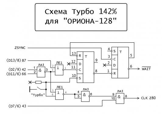 Ещё можно попробовать получить схемы Z80 на 5 и 10 МГЦ из плат Супер-Турбо С.Караваева. В которых использован другой принцип, использующий сигнал /M1 (тогда как в остальных схемах сигнал /M1 вообще не используется). Сигнал WAIT в этой схеме Z80 не используется. Достоинство схемы С.Караваева в том, что в ней работают низкоскоростные Z80 (КР1858ВМ1 или любой Z80B), но при Z80 на такте 10 МГЦ она даёт скорость не 7.5 МГЦ, а лишь ~6.5 МГЦ.