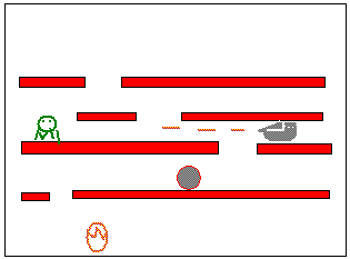 На экране несложный лабиринт, по которому толи батискаф толи космический кораблик убегает от монстров – осьминогов, сбрасывает на них камни и стреляет.