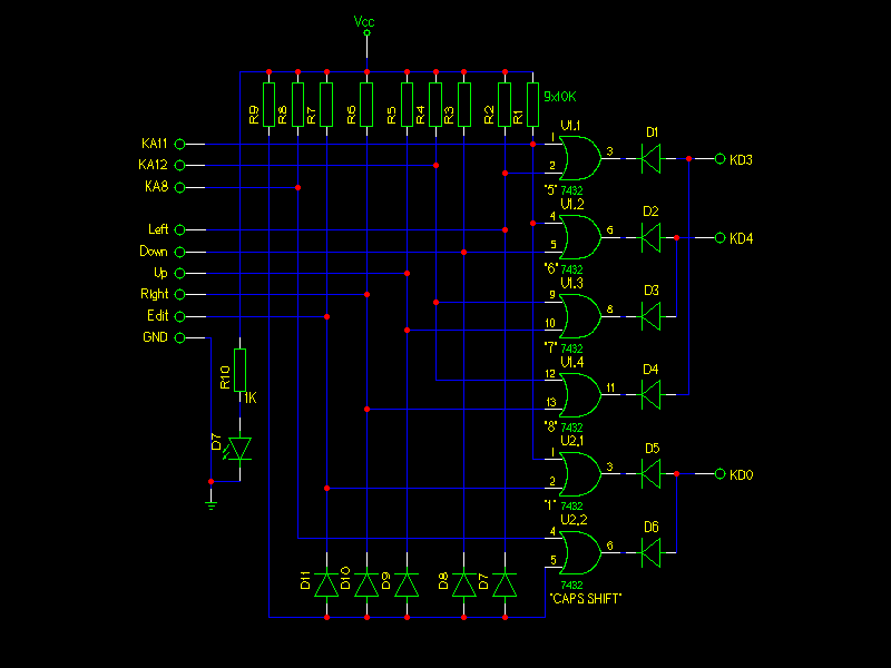 У меня есть клавиатура с доп. клавишами со стрелками и еще "*". Хочу сделать курсорные клавиши + EDIT. Схему разработал, получилось две ЛИ1 плюс некоторое количество диодов и резисторов. Пока еще не собрал. Опубликую, если интересно.