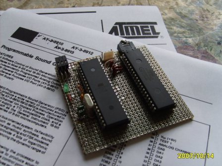 Во-вторых из соображений объема памяти, как RAM так и ROM (Пишу на Си CodeVisionAVR)... Может еще че прицеплю... Если будет делаться законченый девайс, то это все учтется. Просто не хотелось упереться в какие-нибудь ограничения со стороны AVR... К слову Mega8 тоже есть, возможно ее и хватило бы... Зато Mega32 и AY-3-8910 рядом смотрятся лучше...