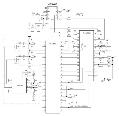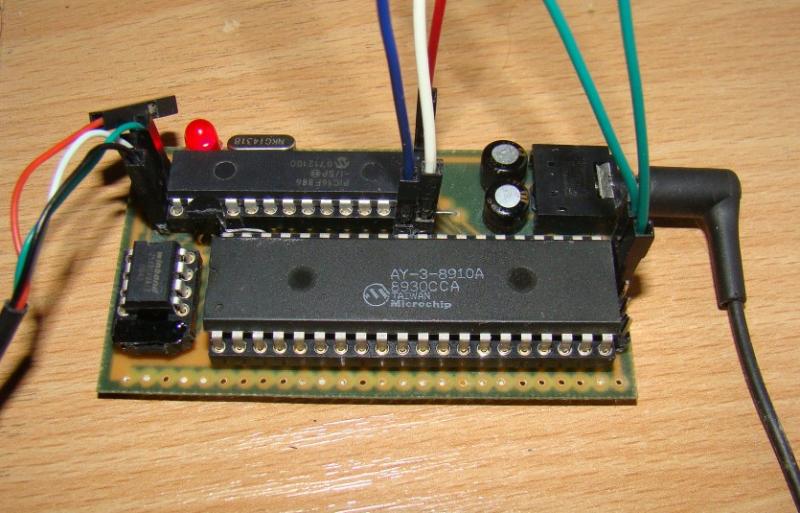 Собран на трех м/сх : AY-3-8910, PIC16F886 и W25X80.