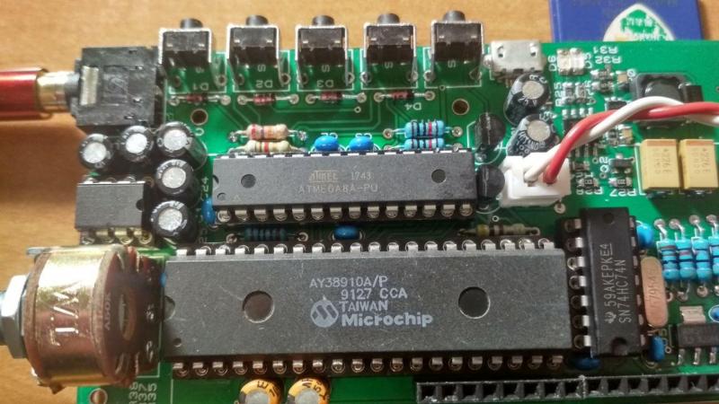 Тогда подскажи еще пожалуйста, у тебя в архиве лежат 3 файла с прошивкой (ay_play.asm, ay_play.eep, ay_play.hex) Шью в область Flash - ay_play.hex, в область EEPROM - ay_play.eep, но контроллер не стартует (на экране нет старта, только тестовые квадраты при питании +5В) По схеме перепроверил и дважды ее пересобрал, но получал одинаковый результат, насколько помню PB6 и PB7 используются для внешнего тактирования. Возникает вопрос, тактирование идет за счет встроенного генератора или за счет генератора 3,57 MHz?